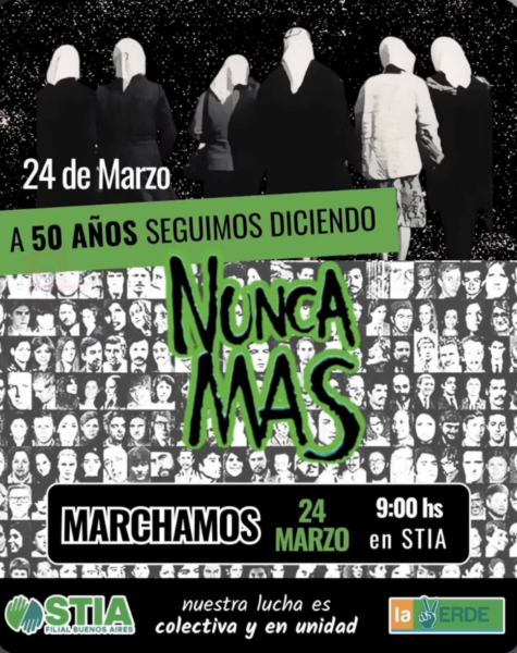 El STIA Capital convoca a concentrarse a las 9 en la sede del sindicato para sumarse a la movilización de la CGT en Plaza de Mayo por Memoria, Verdad y Justicia.